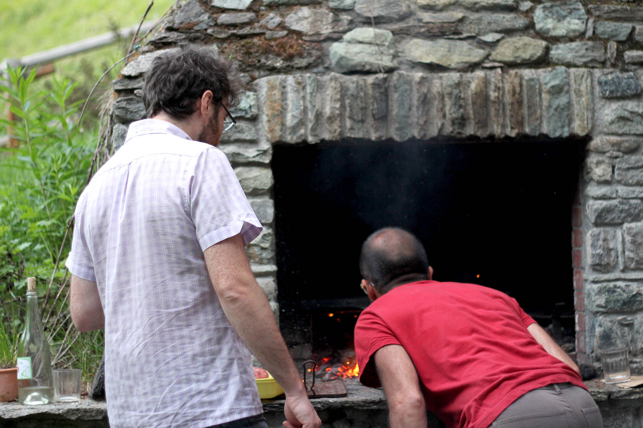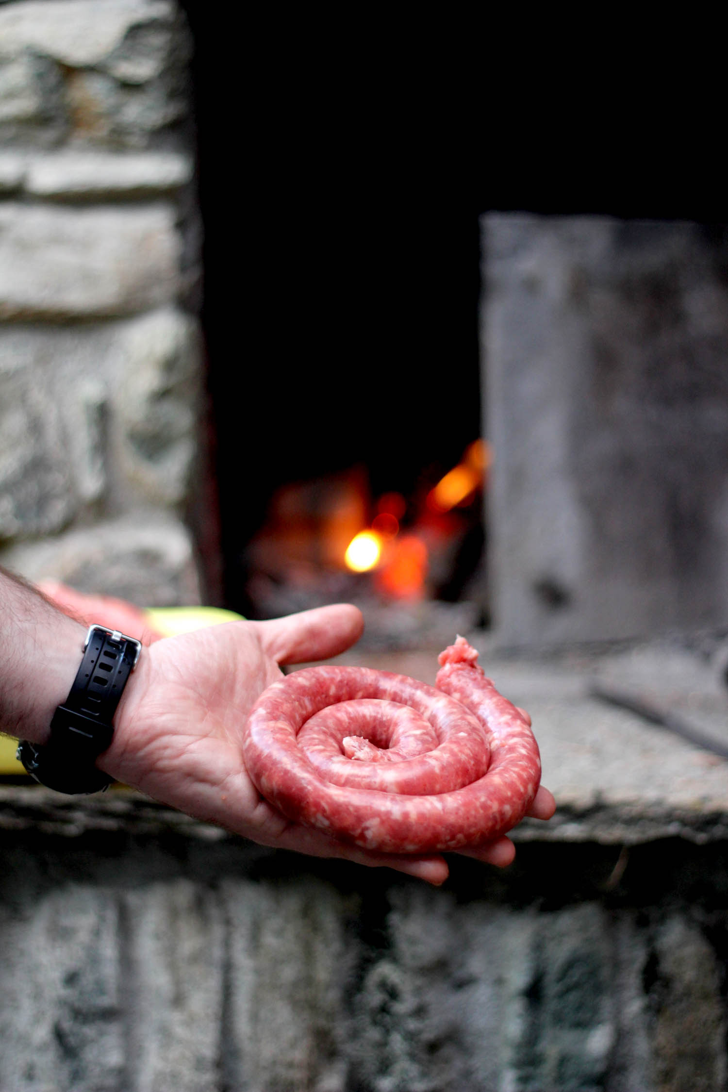 Gianluca and Angelo are making polenta. In an outdoor fireplace of course. With sausages.