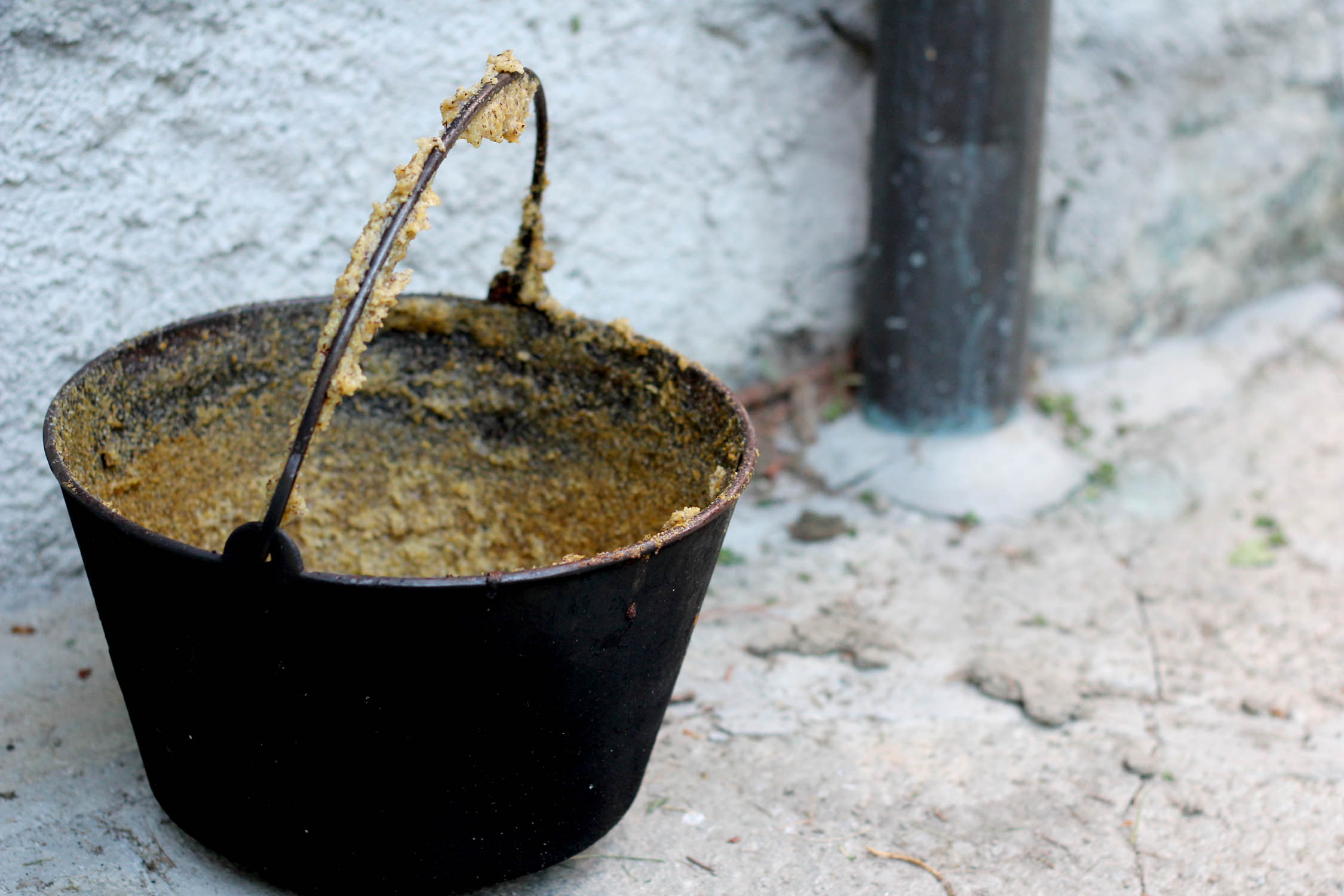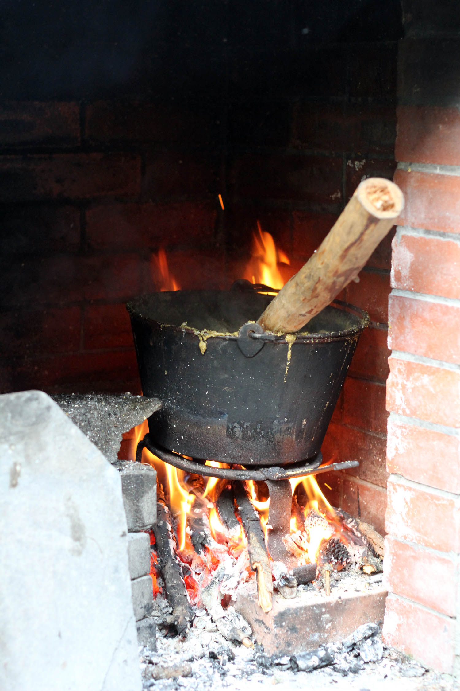 That get served with the polenta, which, of course, is also cooked in an iron pot on embers.