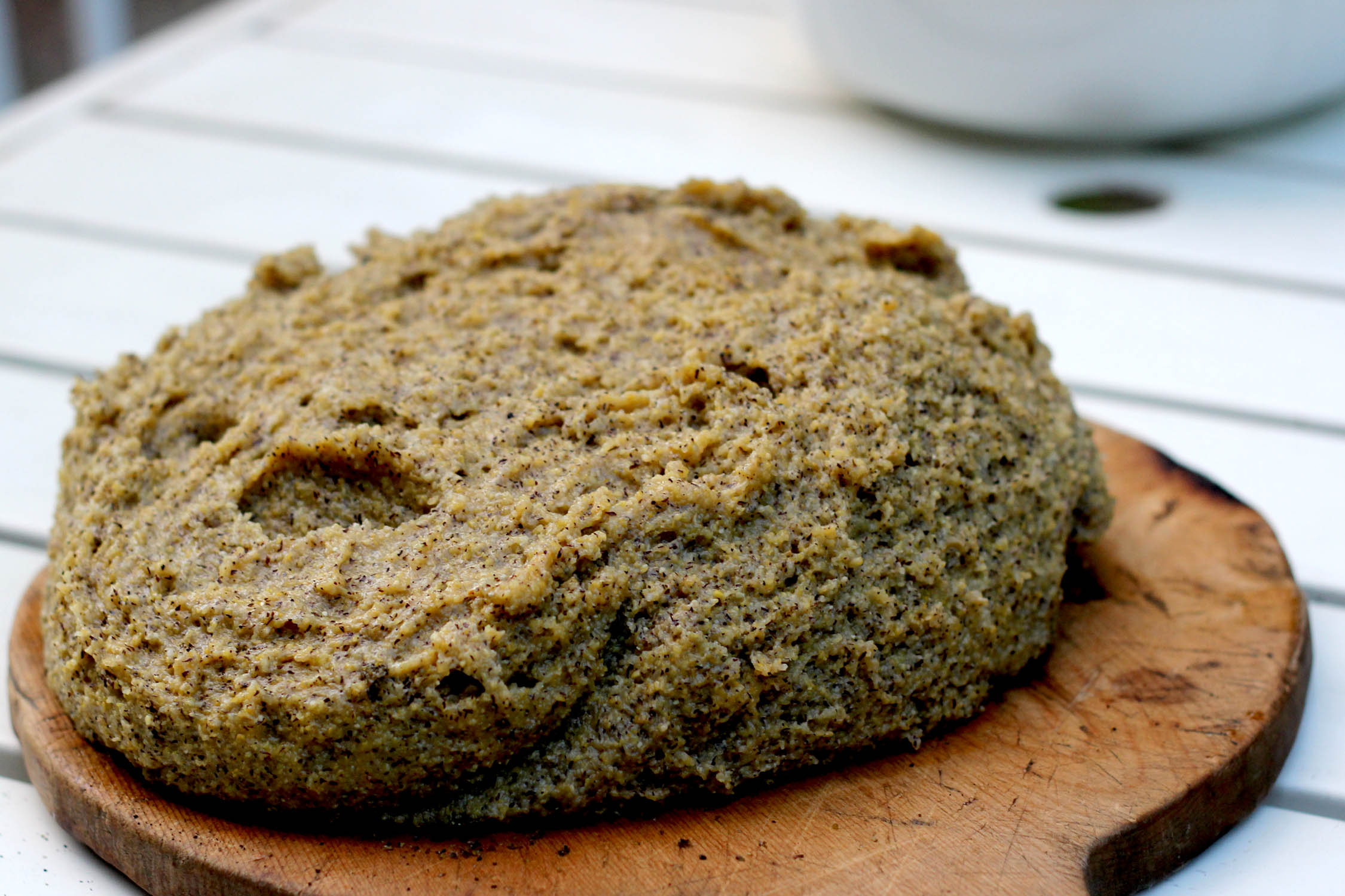 And then the polenta is turned out on a board to serve with the meat and the local fontina cheese. I’ll save the cow vending machine cheese story for the next post.