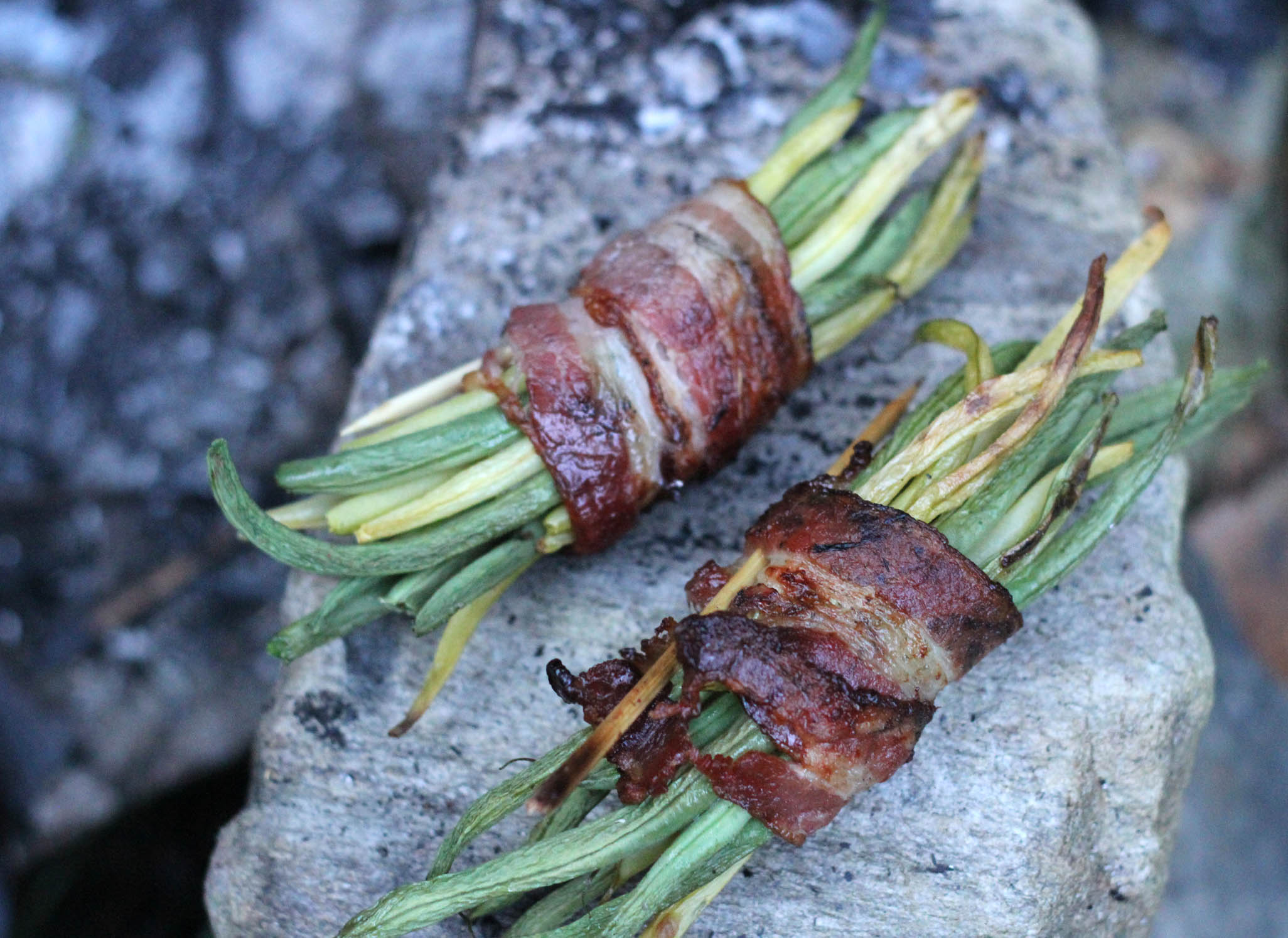 By the way, we’ll be making these local ingredient bacon-wrapped filet beans in our campfire class this Wednesday, along with a veg version.