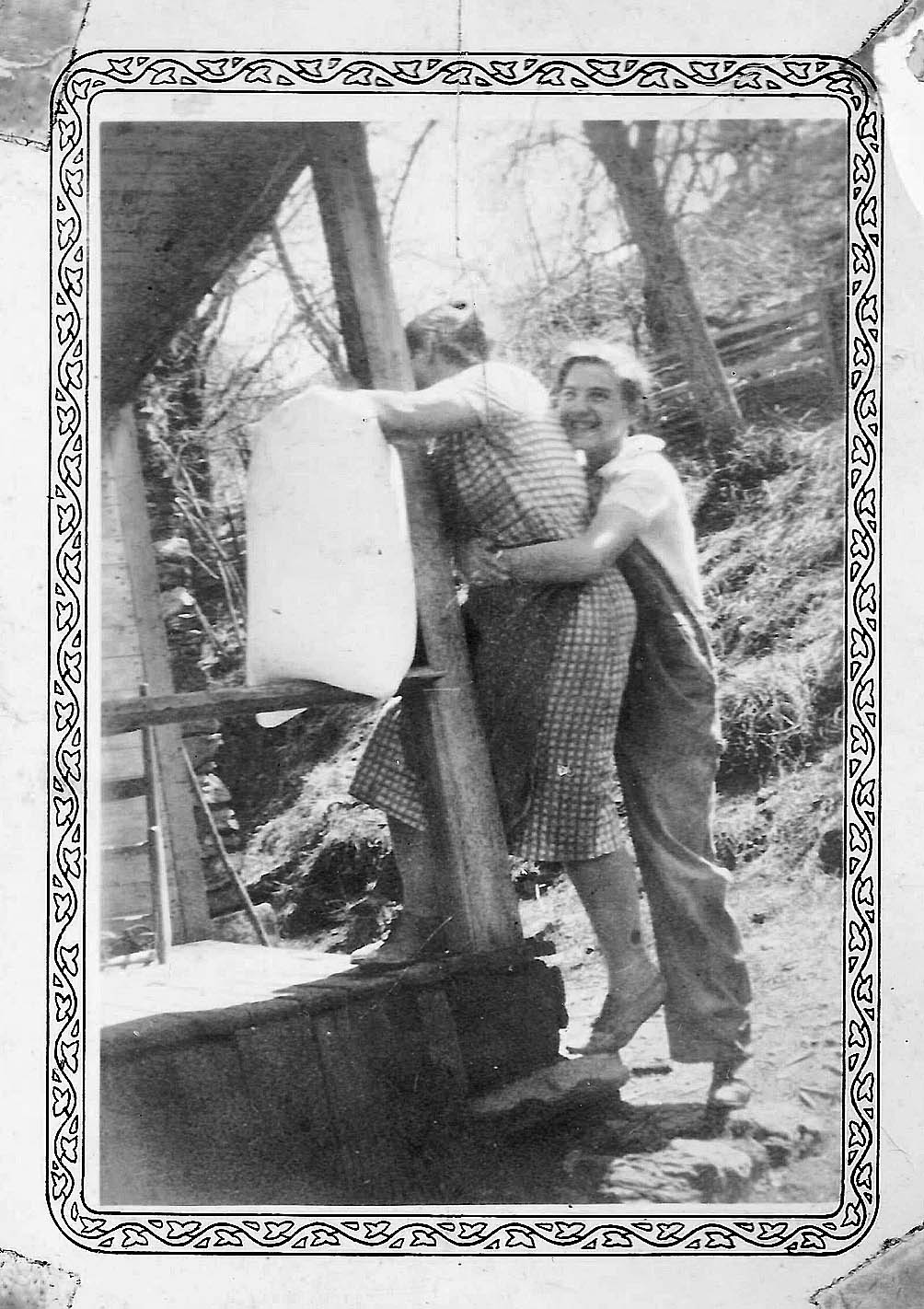 But best of all is the friendship we shared with Effie, who was born ( in 1914) and raised in this cabin that was built by her grandfather in the 1880s. Wayne did some asking around and we found her living just 35 miles down the mountain from Asheville. Effie brought this little mountain cabin to life with stories of her childhood and that’s part 2 of the cabin story. She passed away in 2008 and I miss her every single day. Here she is with her mom on laundry day when she was in her 20s.