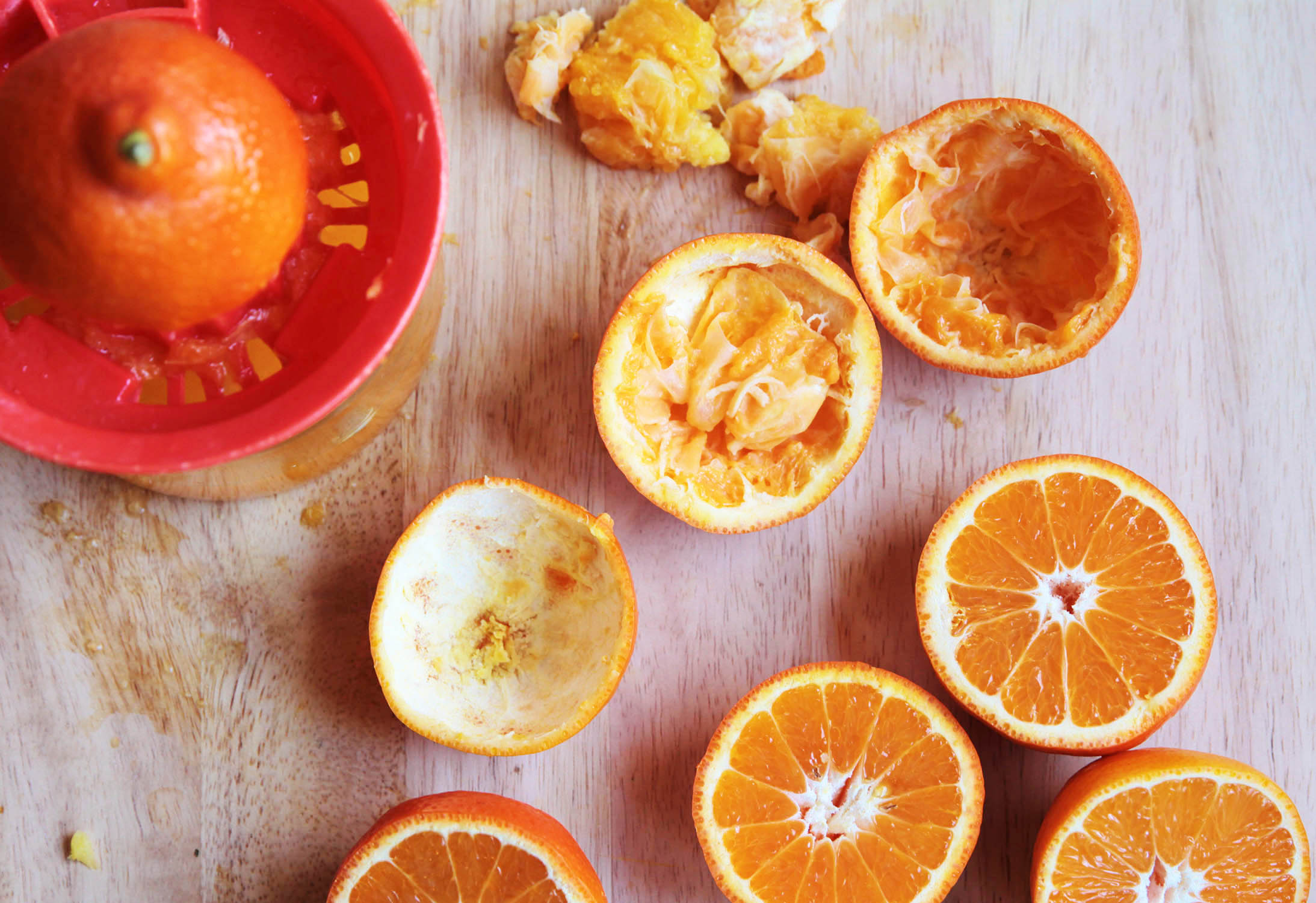 - Cut oranges in half and juice as many as you need for 2 cups of juice