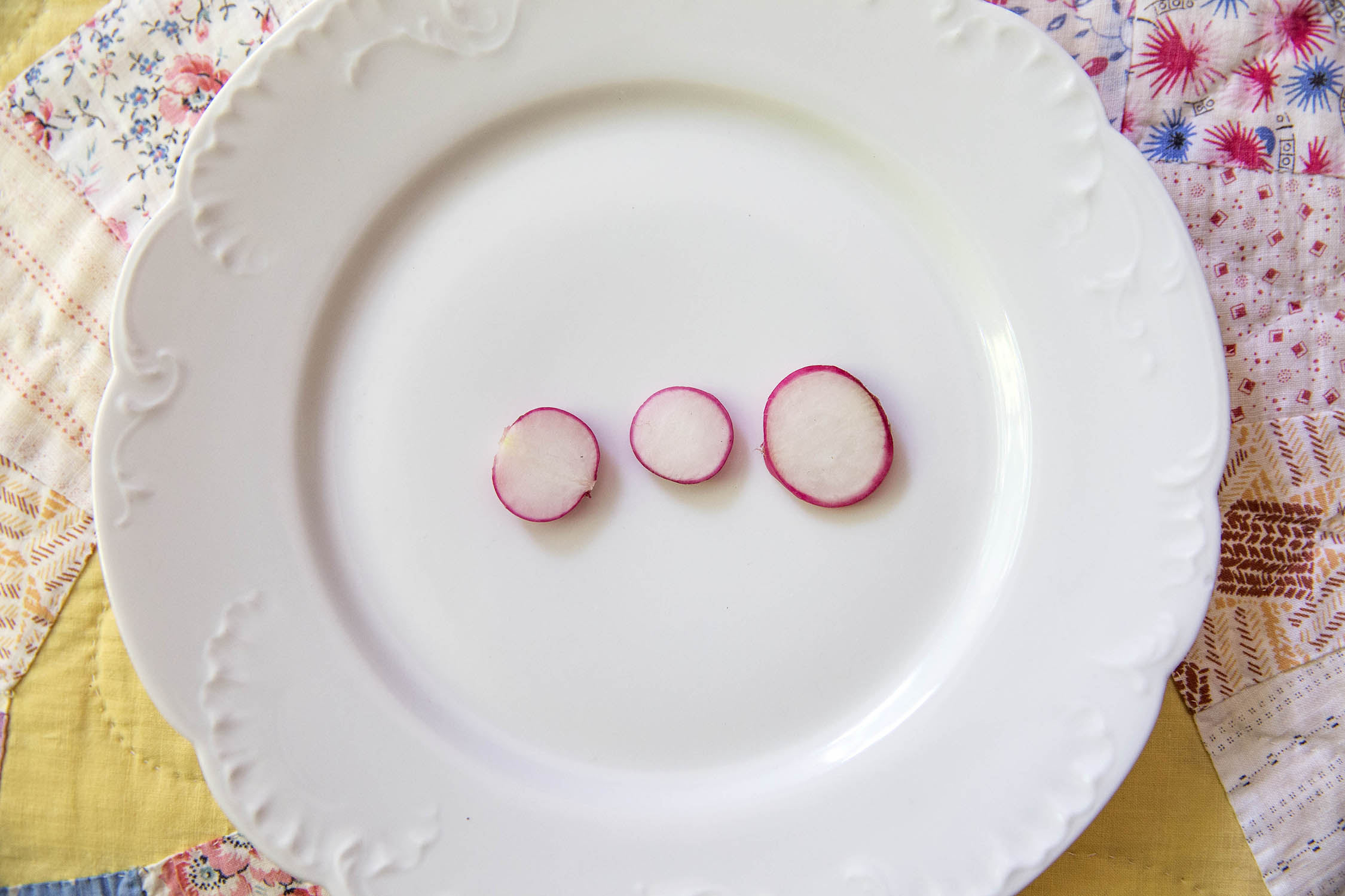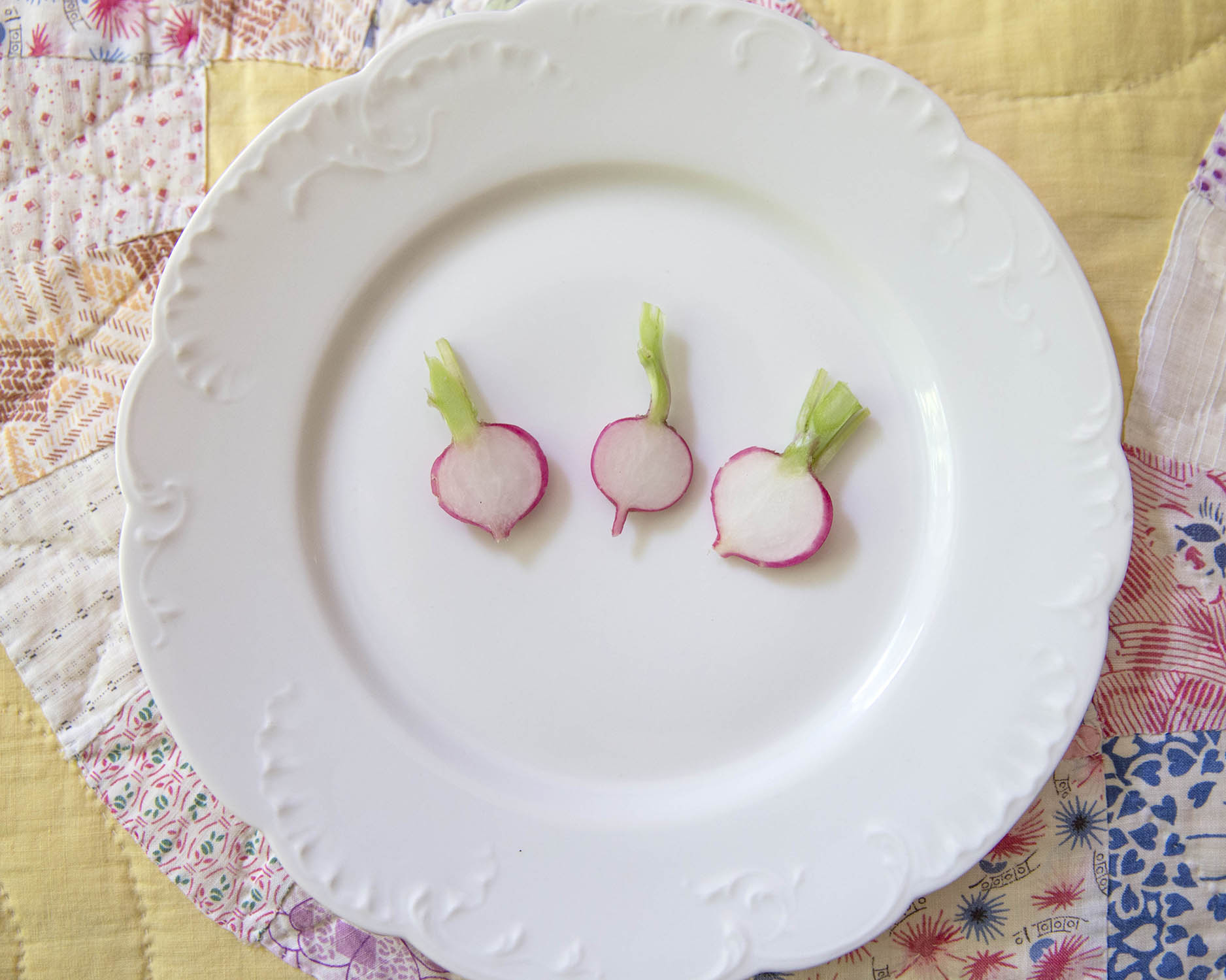 Are you playing with your vegetables again? I hope so. Otherwise, you’ll have to explain yourself to these radishes in need of a hair-do.