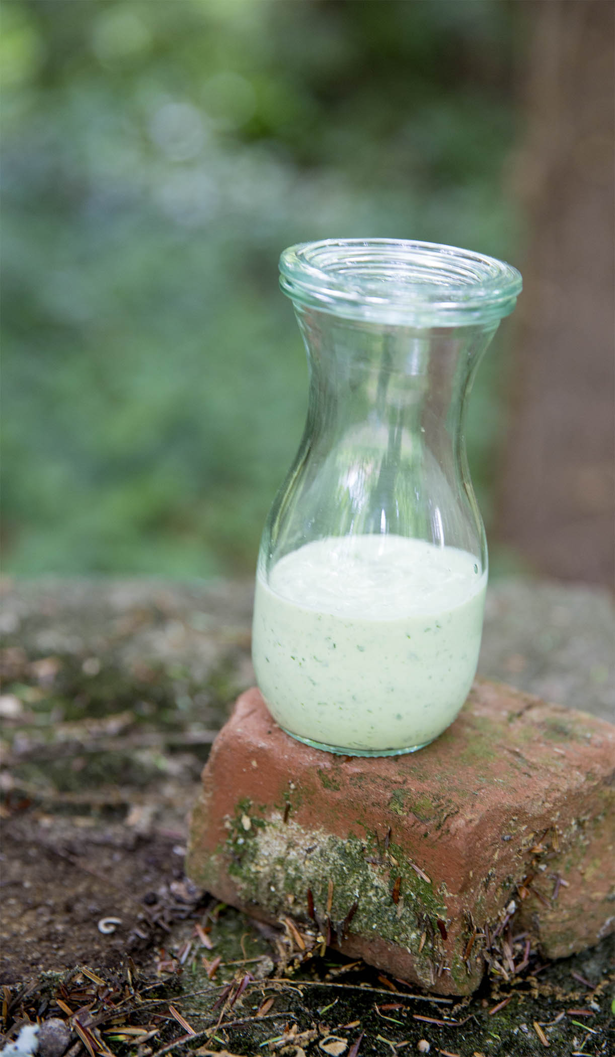 - Into your blender or food processor, place one cup good buttermilk, 2 Tbs. sour cream or greek yogurt, a smushed clove of garlic, a handful of fresh herbs (parsley, basil, tarragon, chives, green onion tops), half an avocado if you have one, a squirt of lemon juice and salt and pepper to taste. Blend until it looks the way you like. Can use as a dressing or a dip.