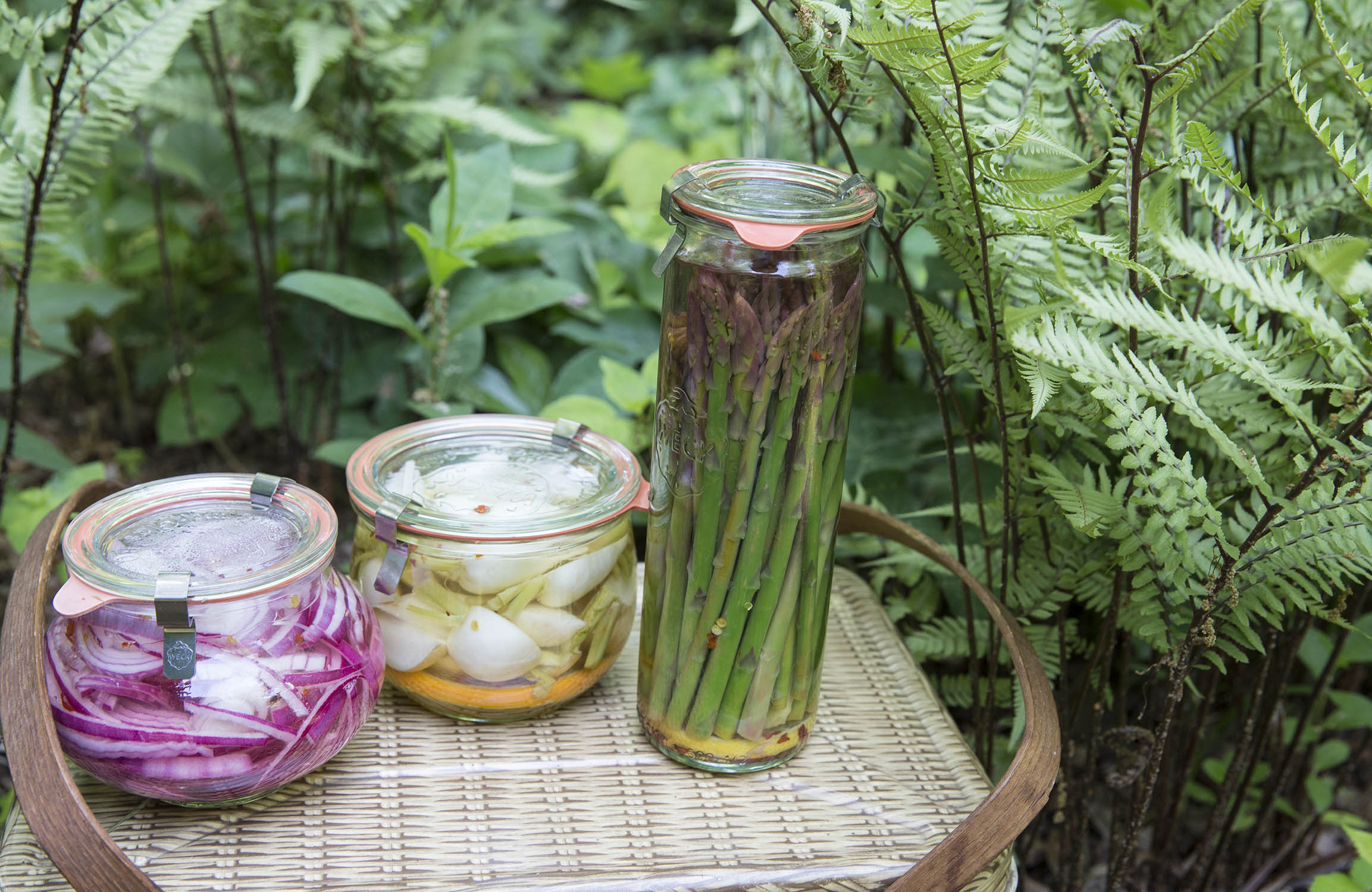 See that fern to the right of the asparagus pickles? Well, that’s a strikingly beautiful Ghost fern which you can purchase anyplace that ferns are sold. This one is a piece of the original mamma of all Ghost ferns which spontaneously appeared in the garden of my very own mamma (and dad). Which is a sweet story for another time, but let me just say that I was just in Richmond VA, visiting my dad and the garden he and my mom created, which is actually more like a park. He tends it on his own now, and it is magnificent. As is my dad. Everywhere you look flanking the maze of antique brick pathways are native woodland plants loving collected, traded, and shared over a lifetime.