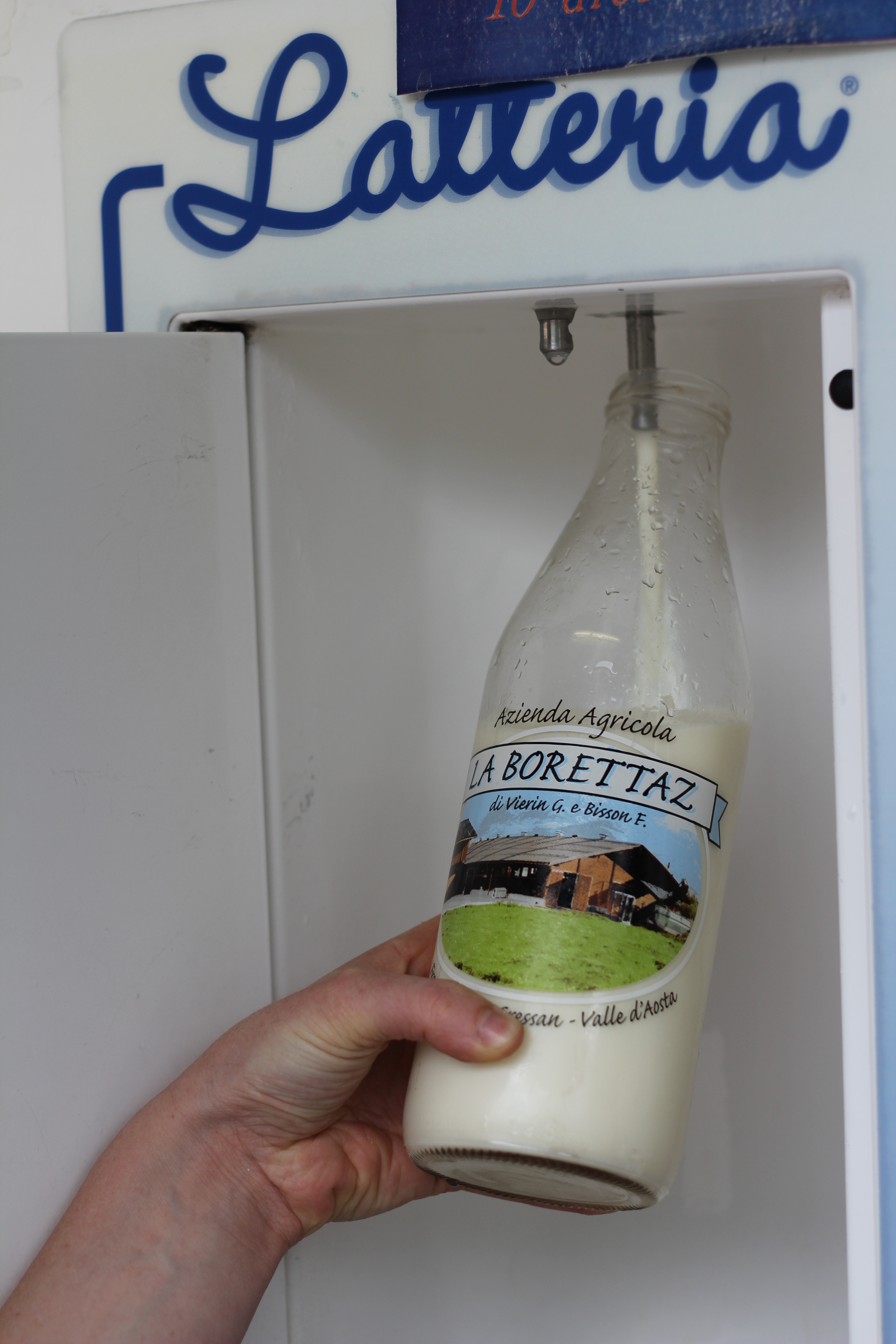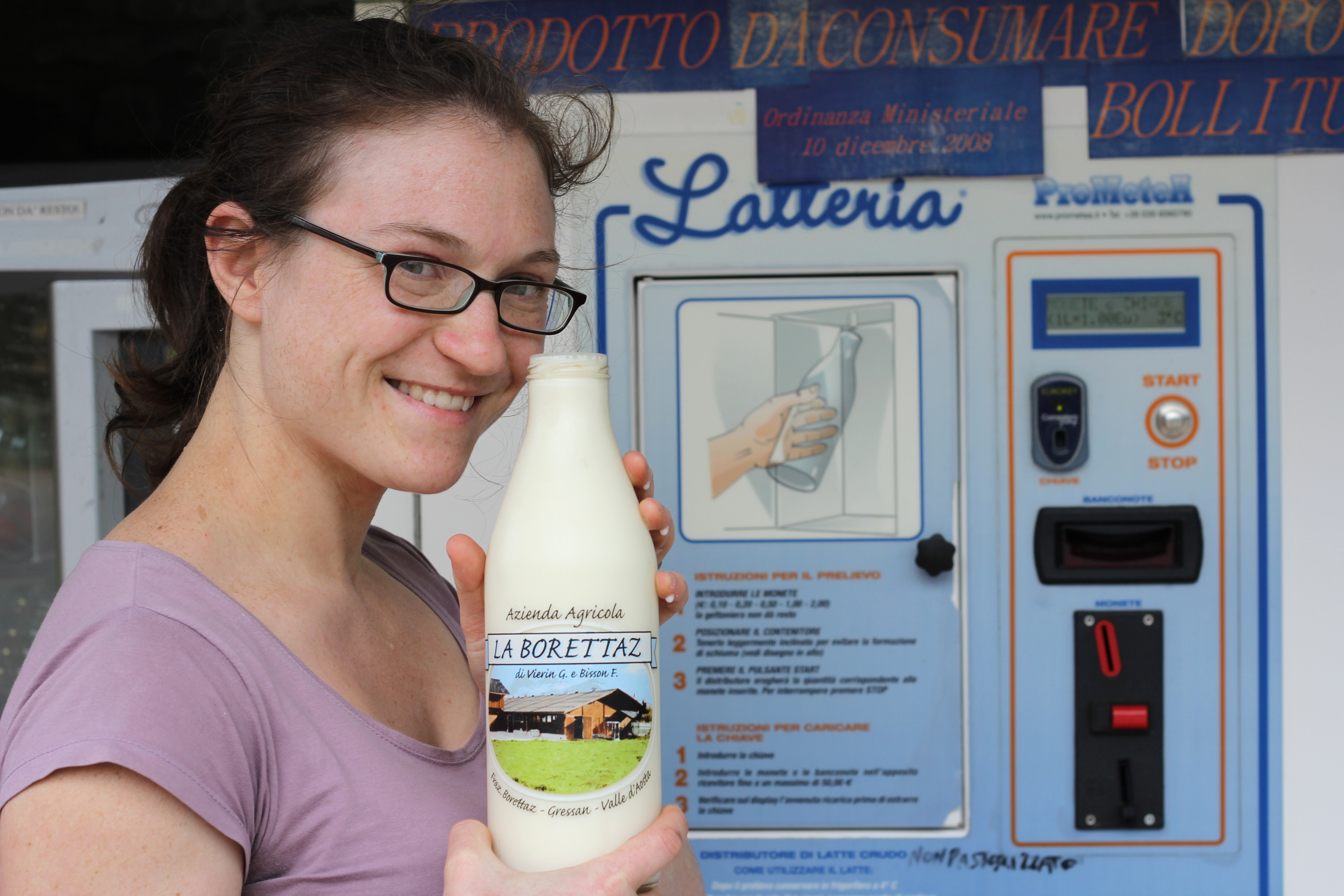 The Latteria sits on the side of a narrow road on the edge of a cow pasture. Drive or walk up, insert a Euro into the machine, and out comes a quart of fresh, raw cow’s milk.
