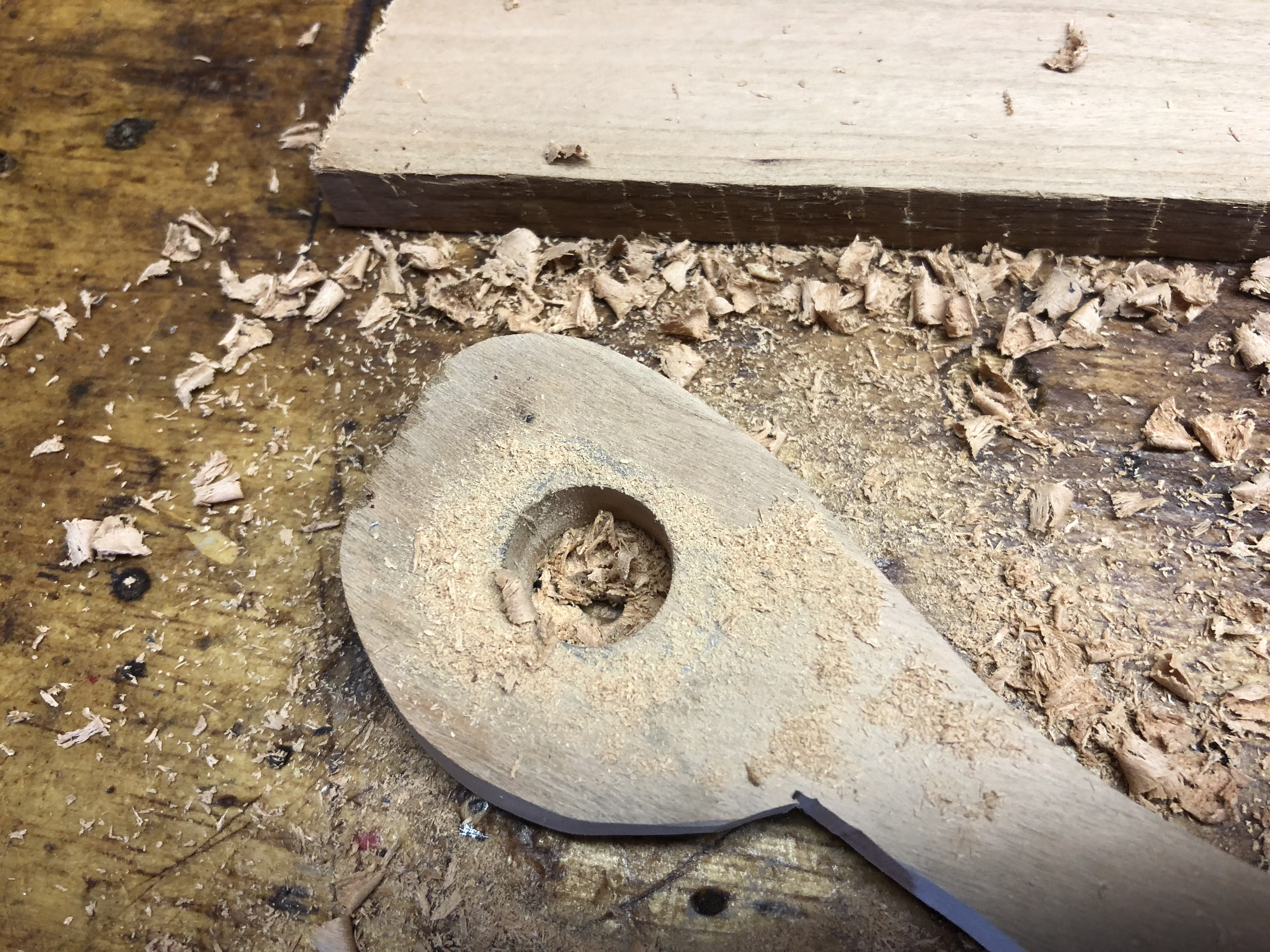 Now, you drill a hole in the handle end because you will want to hang your lovely rustic spoon.