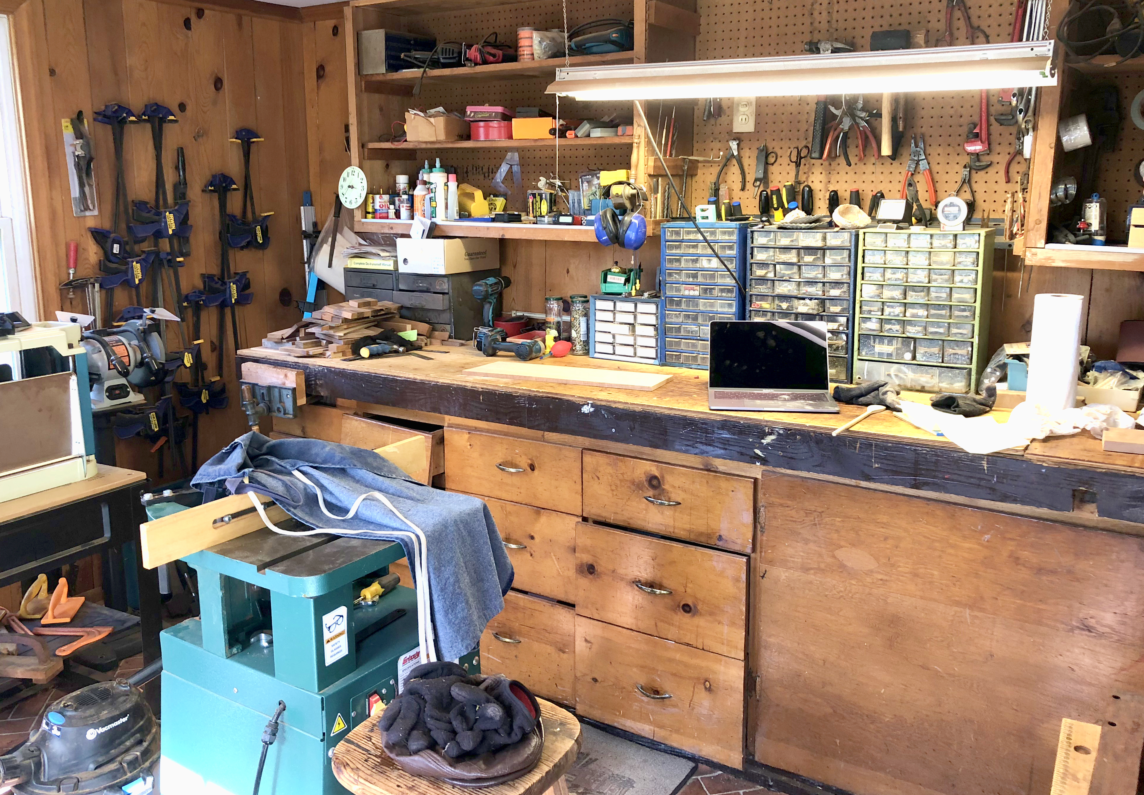 And he has a shop (that he built) where he crafts furniture, cutting boards and kitchen utensils.