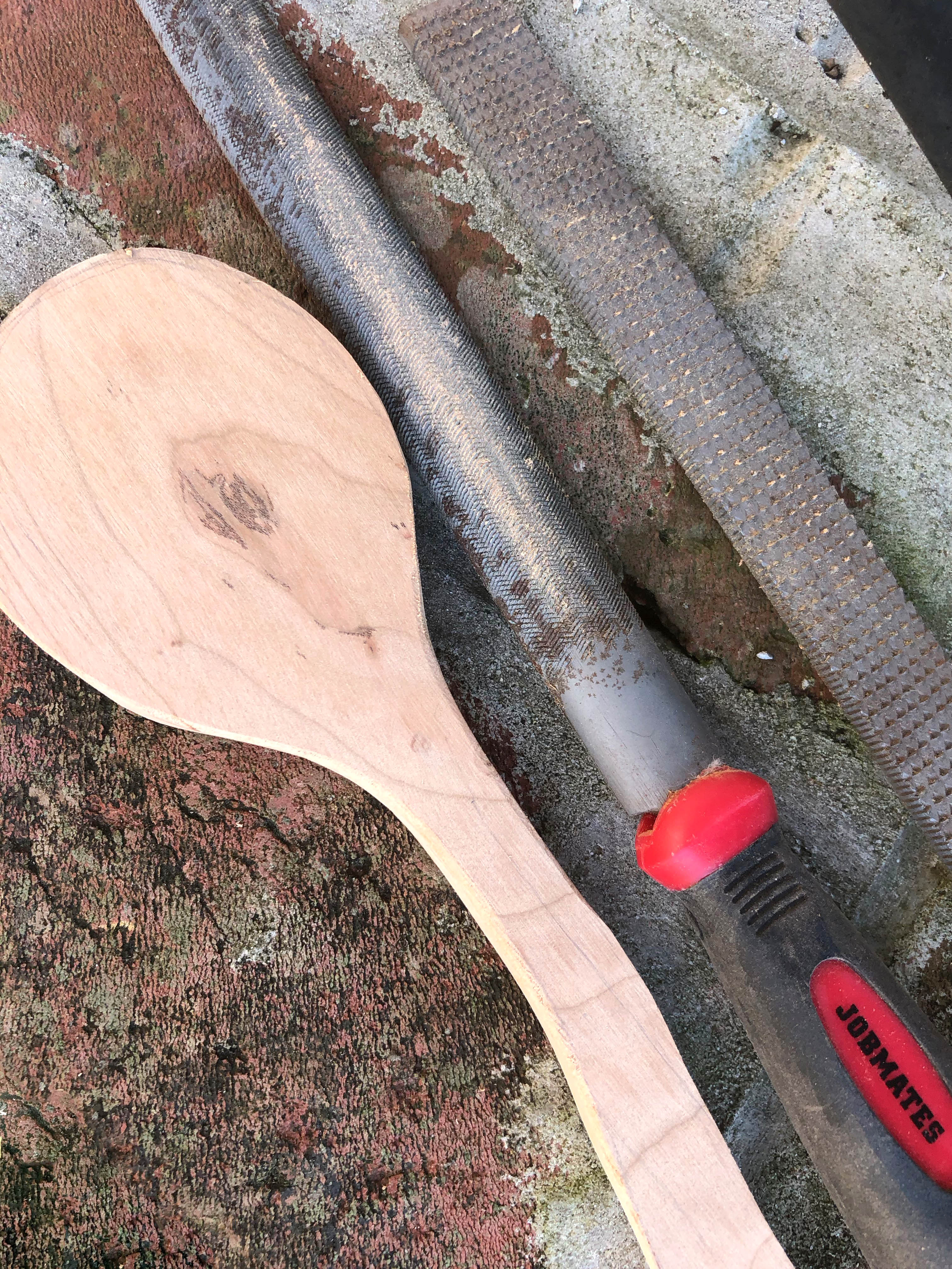 If you are right handed, you will want to flip the curved spoon over and have the curve point toward the right. I figured that out after I unintentionally made a left-handed spoon.