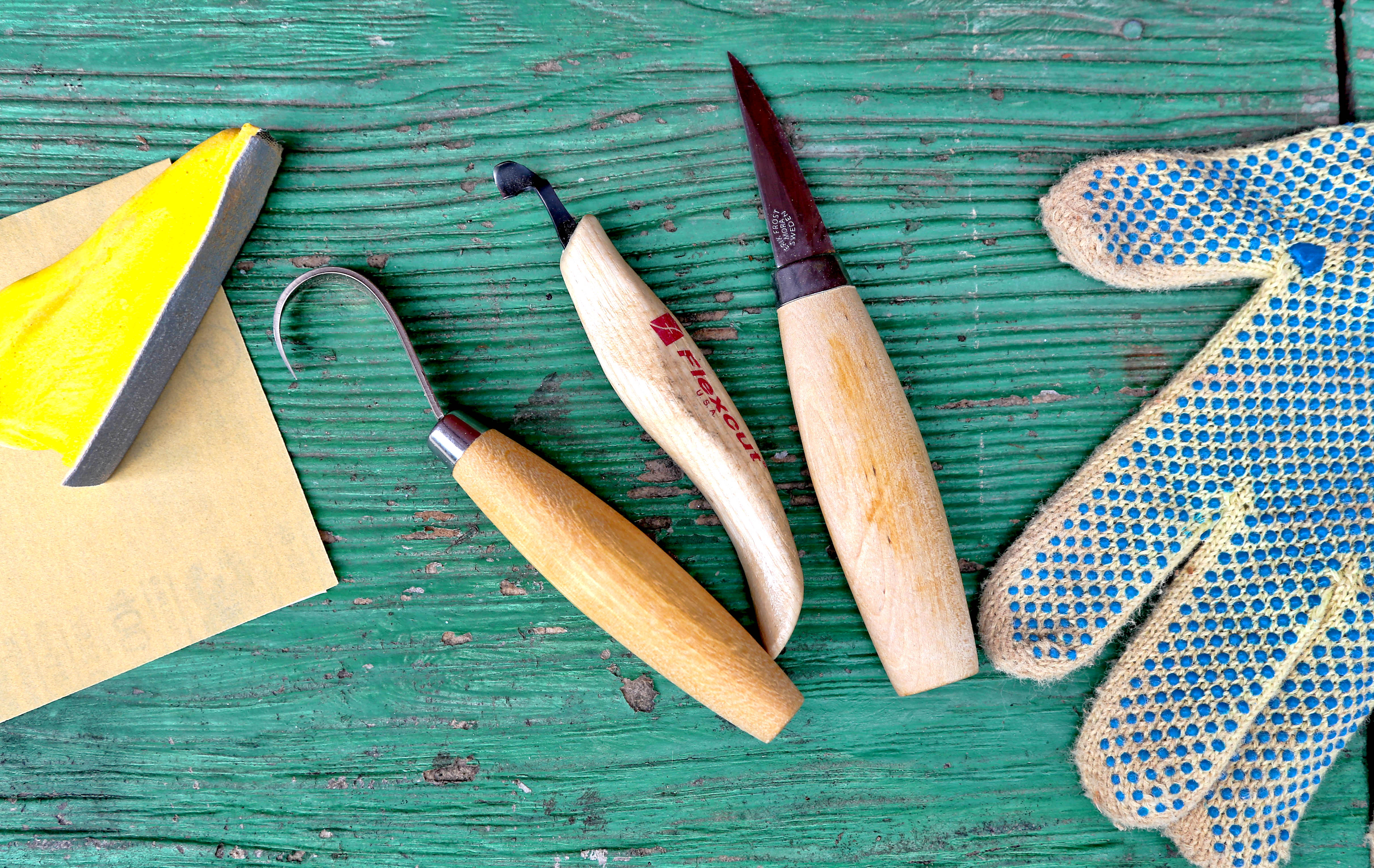 And then you will collect a few rasps … a round one (for the hanging hole), a medium one and a finer one with a rounded back.