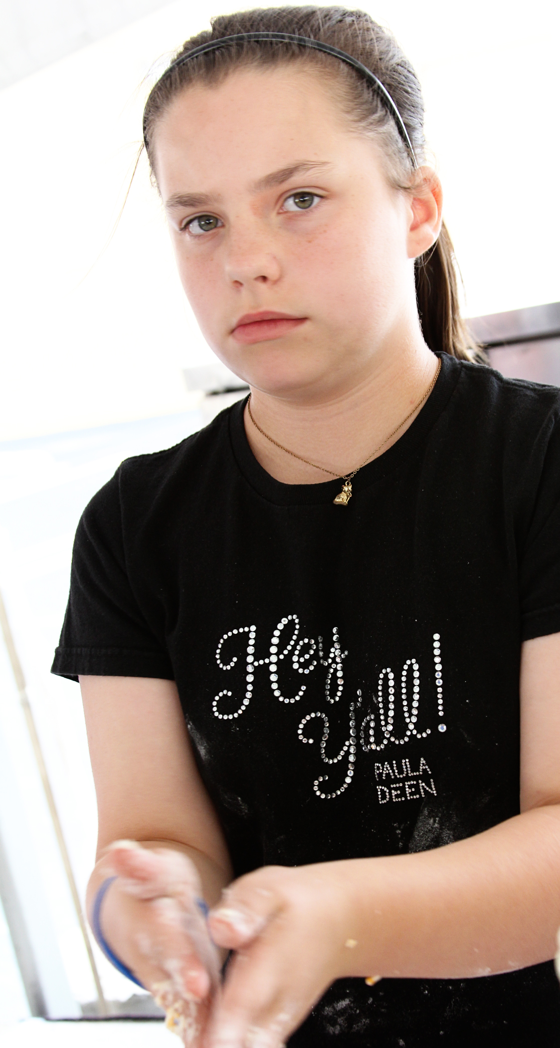 These three gals could  turn out a biscuit! Here’s Kaylee Case making her winning heirloom Mammie’s Hammie biscuits.  She served them in her grandmother’s broken-handled iron skillet.