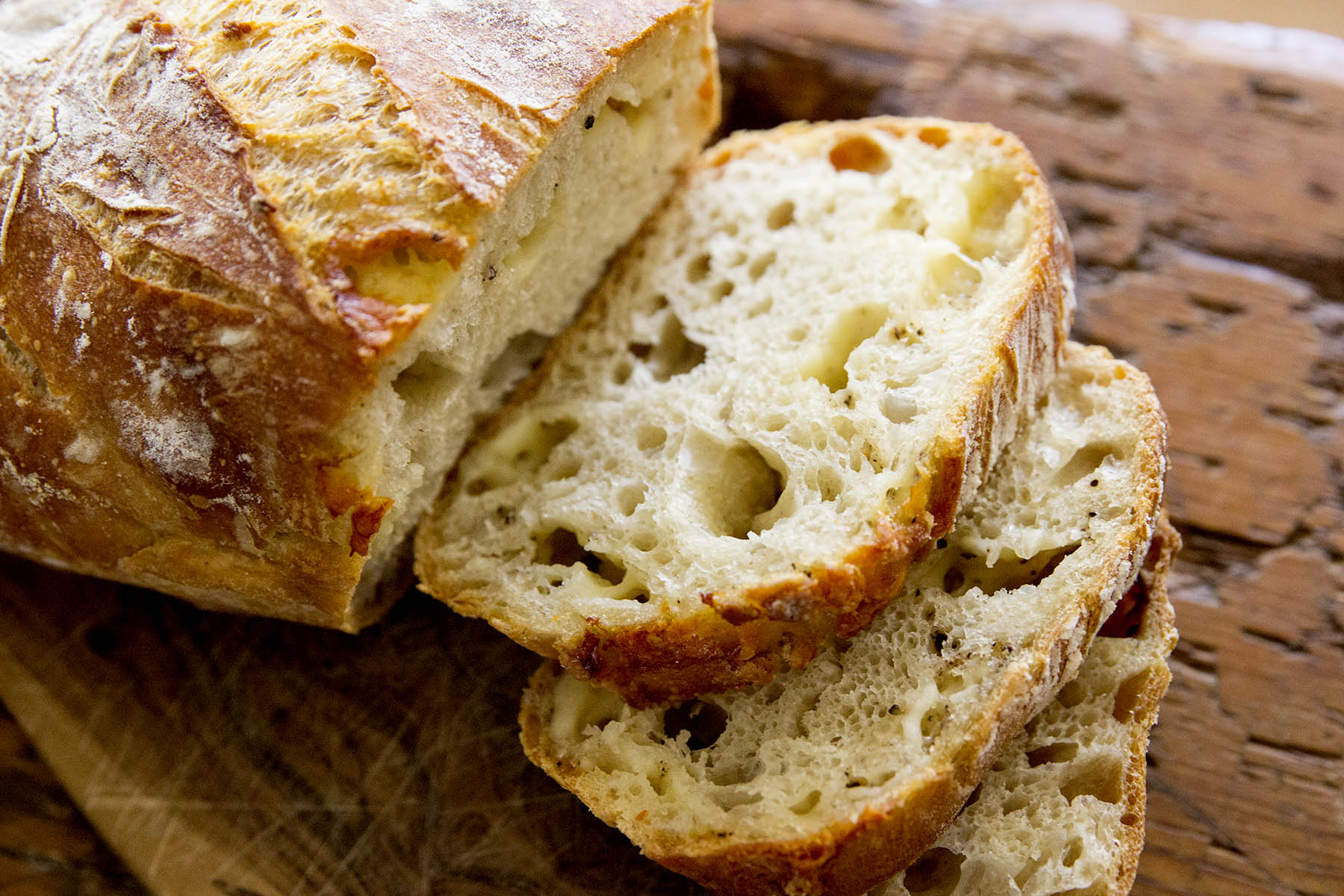 I’m embarrassed about how easy it was to make this primitive-looking rustic cheddar/black pepper bread. I’m even more embarrassed about the method in which I’m going to share the not-recipe for it. My excuse is that I’m writing a book and I’m trying to learn to use InDesign in which to do it, so there’s a lot of cussing and freaking out/whining up here in my attic-office. But we needed bread for lunch.