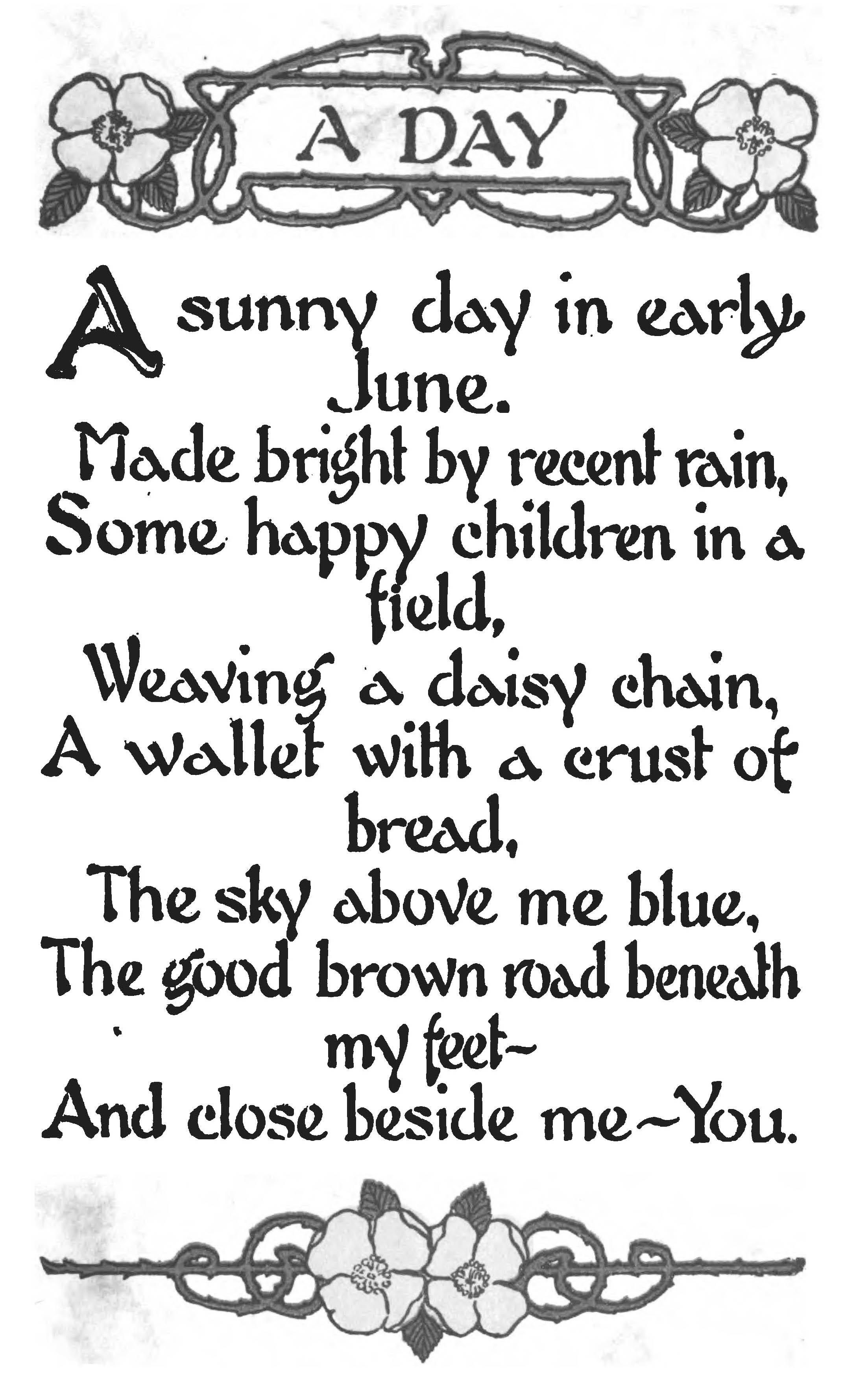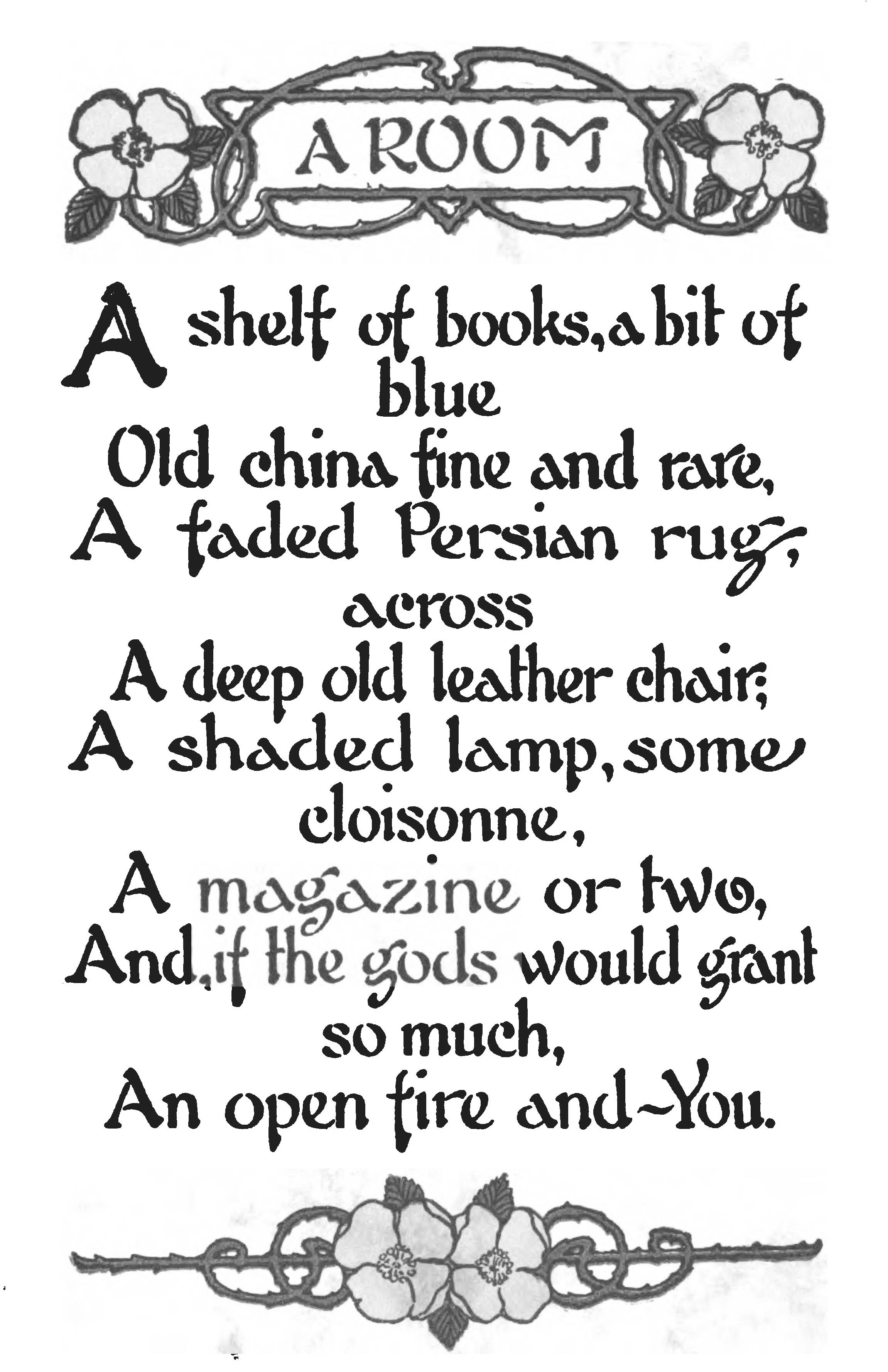 Now that you have found your person of interest, and you have conducted an appropriate courtship culminating with letter no. 45 entitled A Knight Goes Riding to his Girl, you will be needing some additional inspiration for keeping that spark a-sizzle. That’s where Elizabeth Gordon comes in with her teensy yet fabulous 1912 book of poems entitled “Just You.”