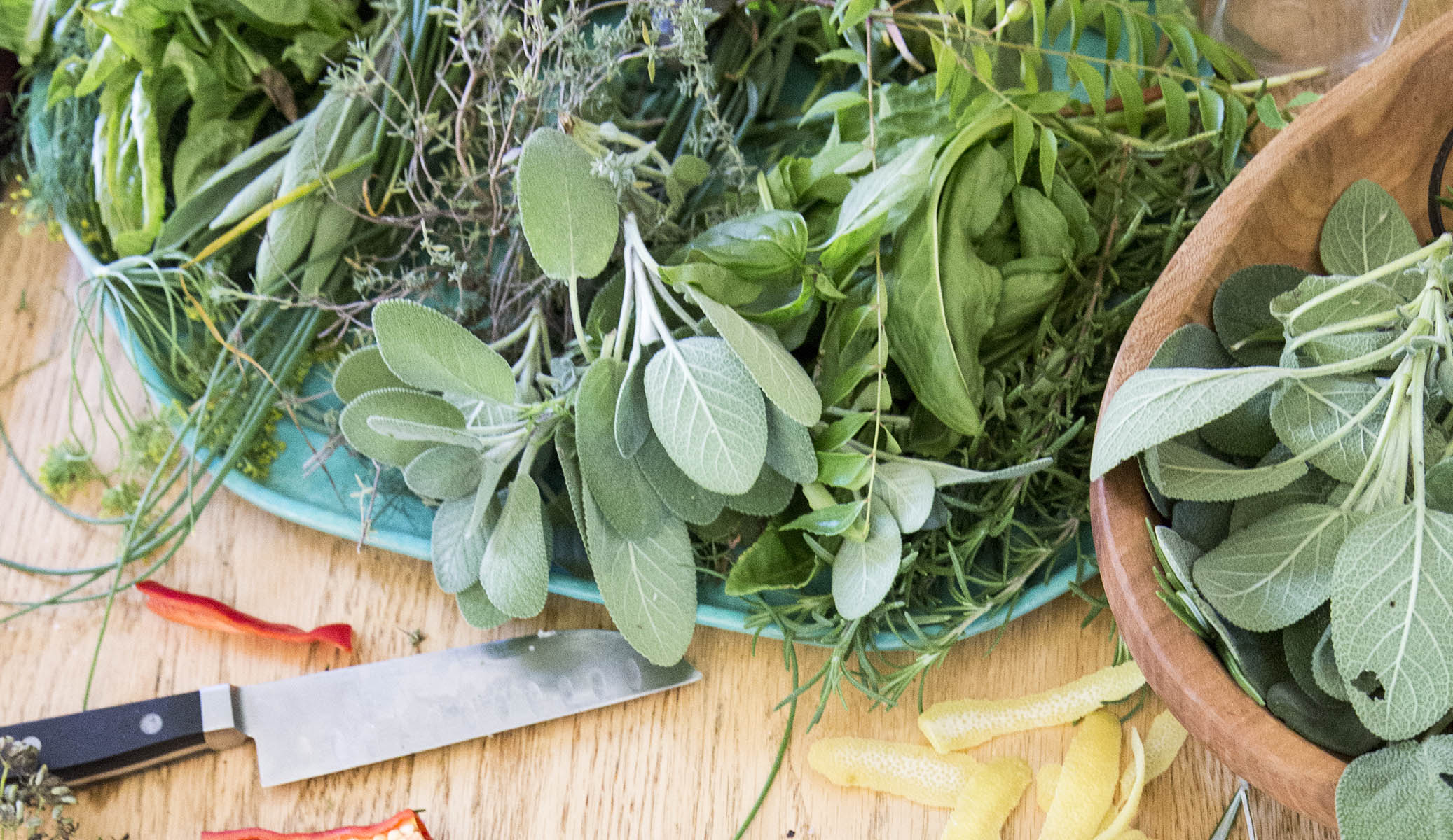 - up to 1/2 cup total of fresh sage, rosemary, and parsley (not basil, it turns dark)