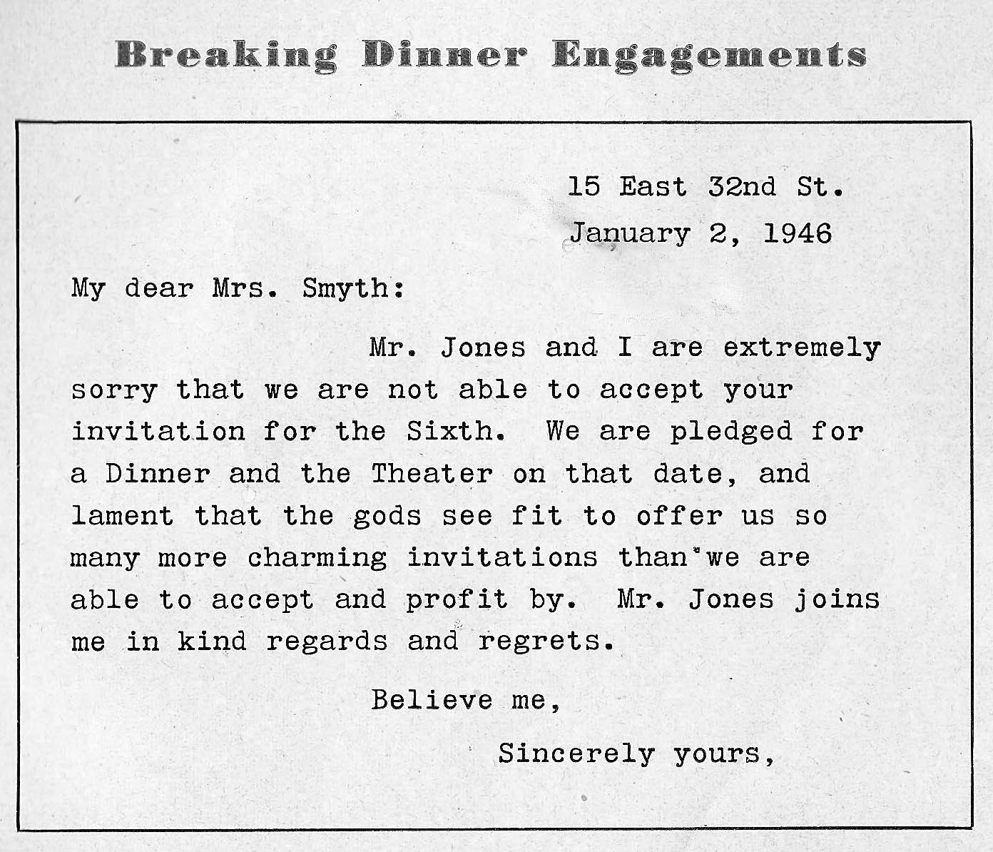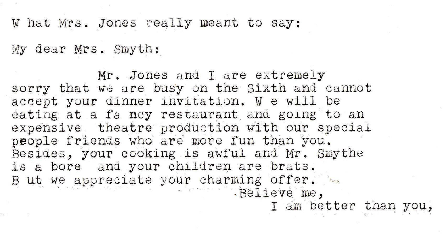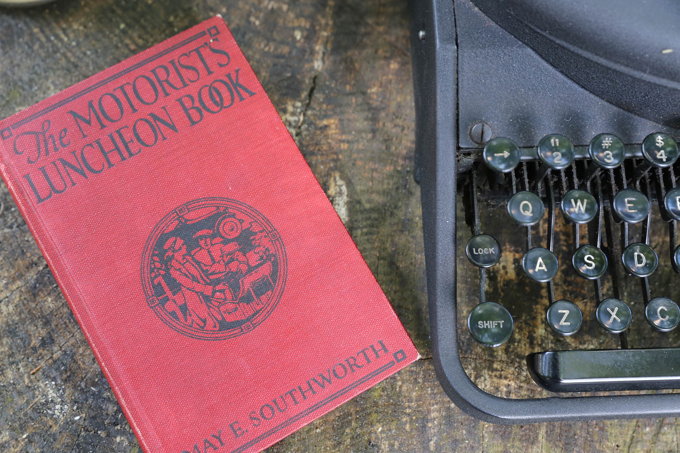 A portable cooking cookbook deserves to be written on a portable vintage typewriter. Only problem is that it’s been a while since I’ve typed on a manual typewriter. I’m rusty, and my pinkies are a bit flaccid, so I need to build up strength for typing “p” and “q” and such. The typewriter came with a case and the KEY for heaven’s sake. And the instruction booklet is with it as well. I need to share with you important information about how to craft a dinner invitation and how to respond. Thank you Mr. & Mrs. Remington, 1946. The reply is hilarious. I can’t stop laughing.