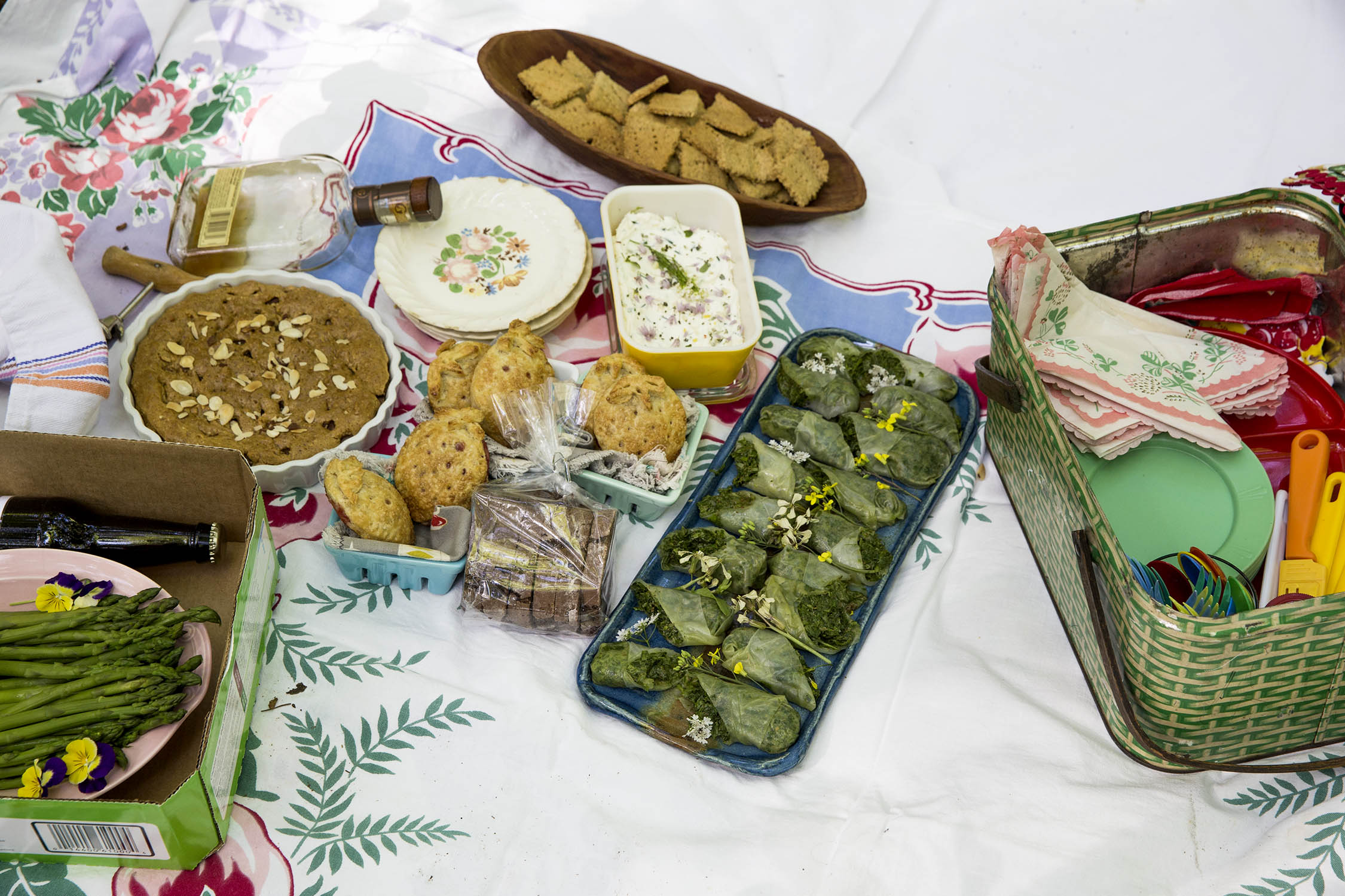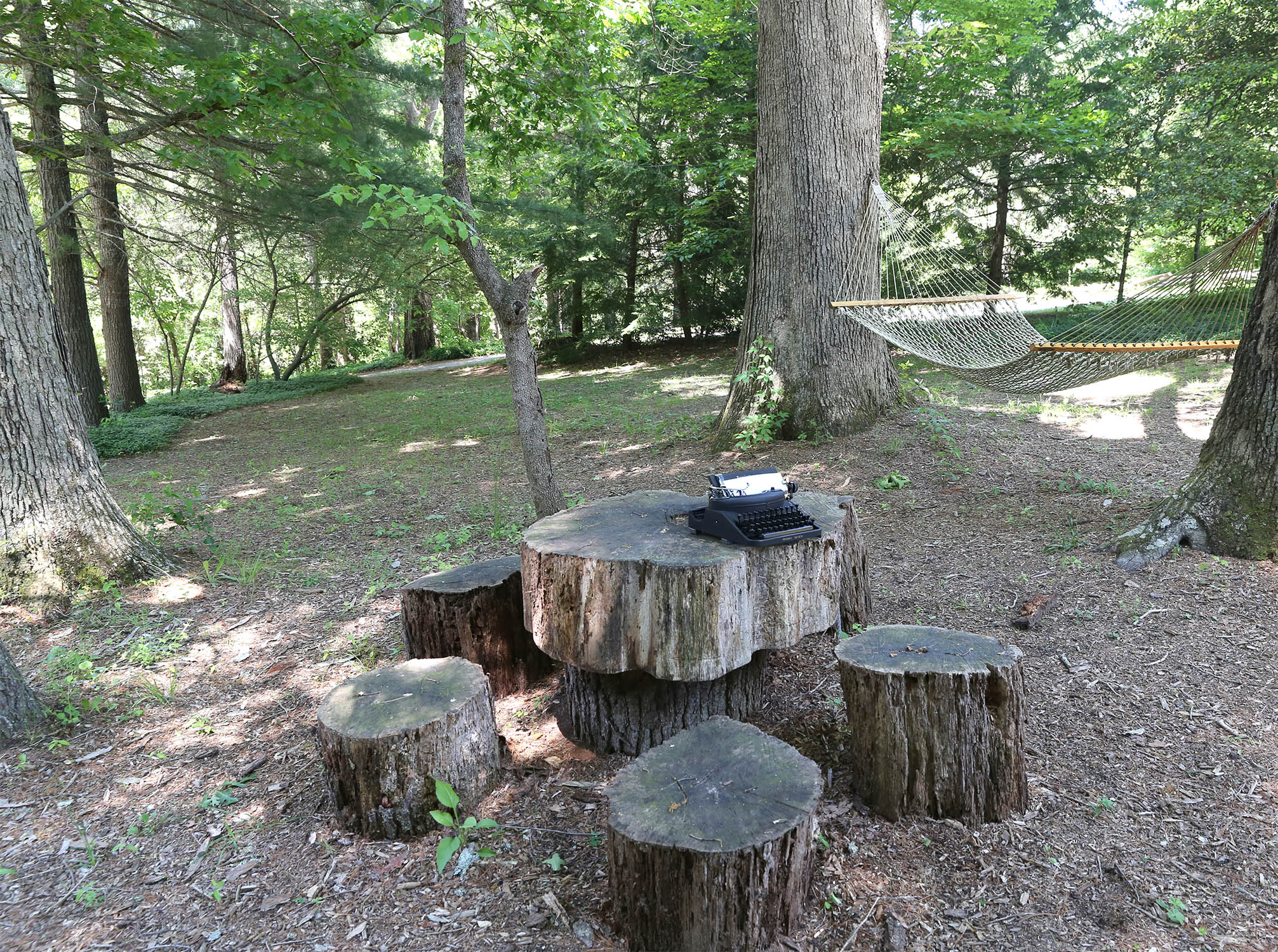 I call this the stump picnic table office. And it’s perfect for writing a vintage cookbook about this sort of thing: