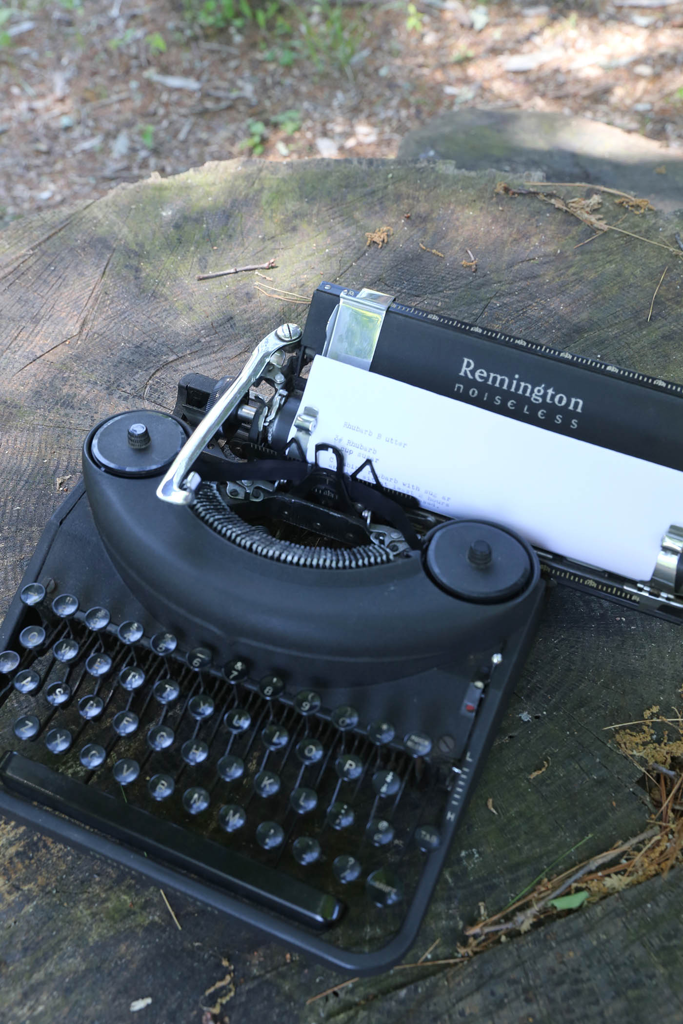 The 1946 Remington Noiseless Portable Typewriter. I’ve been looking for a manual typewriter with a not-tiny font in good working order for years now. So when my daughter, Rita and I came upon this one in an Atlanta antique store recently, I grabbed it. The ribbon was dried up, but did you know they still make manual typerwriter ribbons? In the USA no less. Anyway, here’s one of my new off-site offices.
