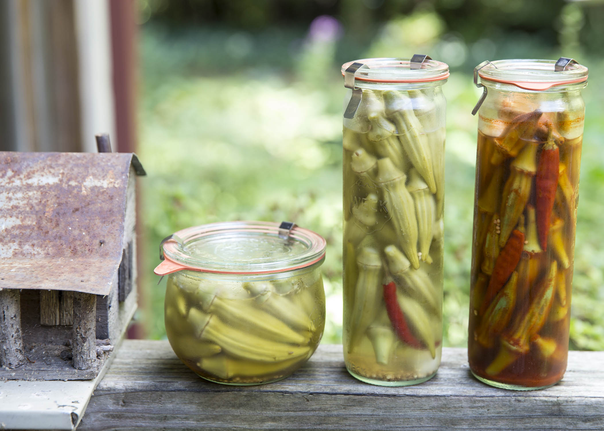 Okra freaks me out, but okra pickles are so good and slimless enough once they sit for a couple weeks. The super tall Weck asparagus jars make for some gorgeous smoky-okry and garlic dill okra pickles.