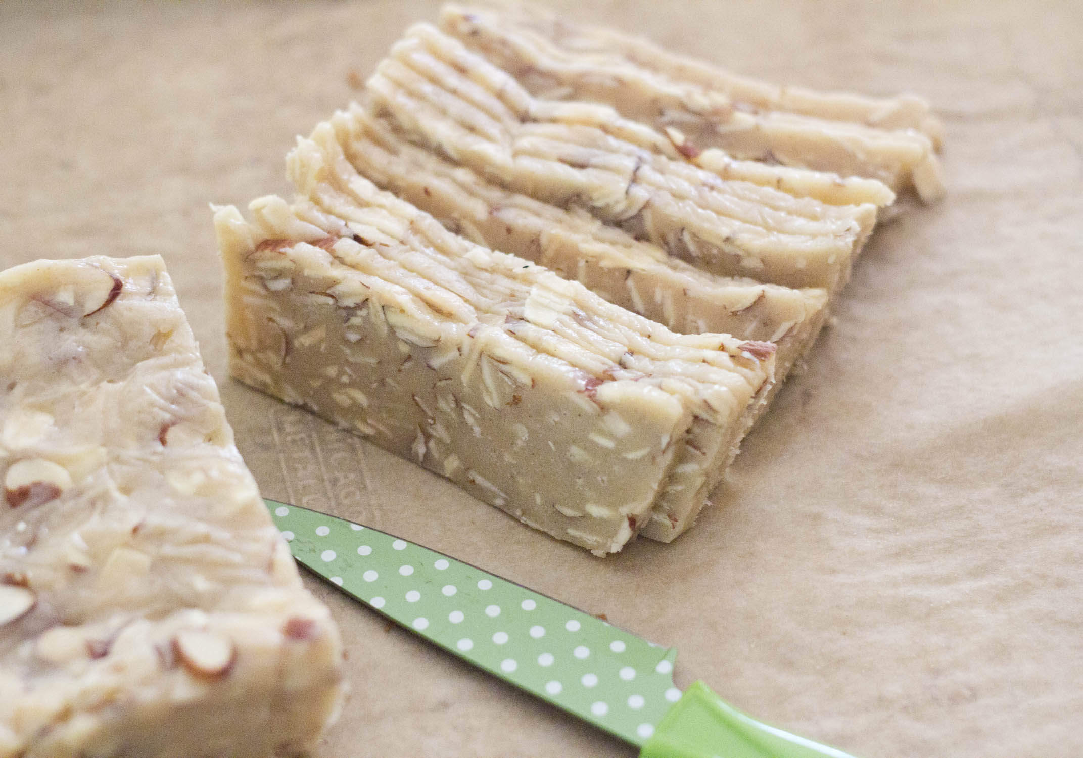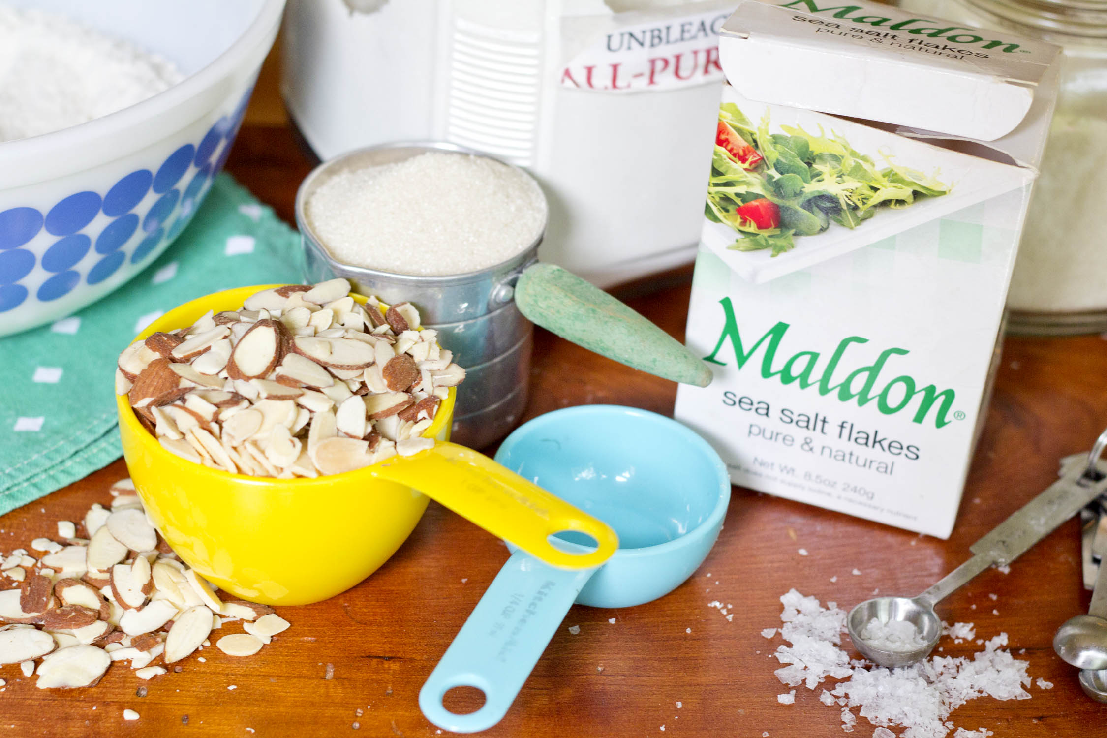 The recipe is obscenely simple. You’ll need butter, sugar, almonds, salt, soda and flour. And cinnamon if you like. And a bread pan.